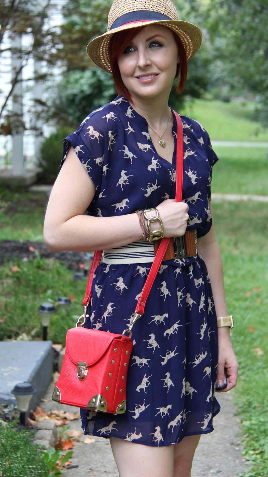 I got this cute horse print dress the other day at Clothes Mentor! Have you ever been to a Clothes Mentor? I love them- they always have great high end name brands for super reasonable prices and the clothes aren't as juvenile as their sister store Plato's Closet! I also bought a J.Crew dress and an orange suede J.Crew bag for my best friend for her birthday!