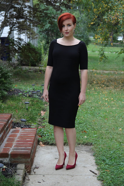 Happy Monday Everyone! Today I'm feature a super classy Ann Taylor dress that I thrifted a few weeks ago! It is made of a cotton stretch material and has a empire waist so even though it's not a maternity dress I thought it would work well as one! This is actually what I'm thinking about wearing for our baby shower next month. I always pictured that if I ever decided to have kids that I would wear a black dress to the baby shower. Not sure why- maybe a bit because of my rebellious nature and a bit because it just is so classy! Actually when I got pregnant I told my husband that I was thinking about only wearing black for the next 9 months! I have been wearing a lot of black but I've branched out a quite a bit too!